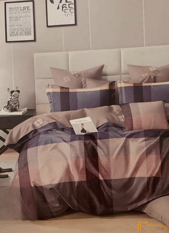 Cappuccino színű alapon padlizsán, mogyoró színű kockás minta. Hátoldala cappuccino bézs apró kockás, azonos a lepedő színével. A rendszerető emberek szeretik a szabályosan elhelyezkedő mintákat.Színei könnyen illeszthetőek