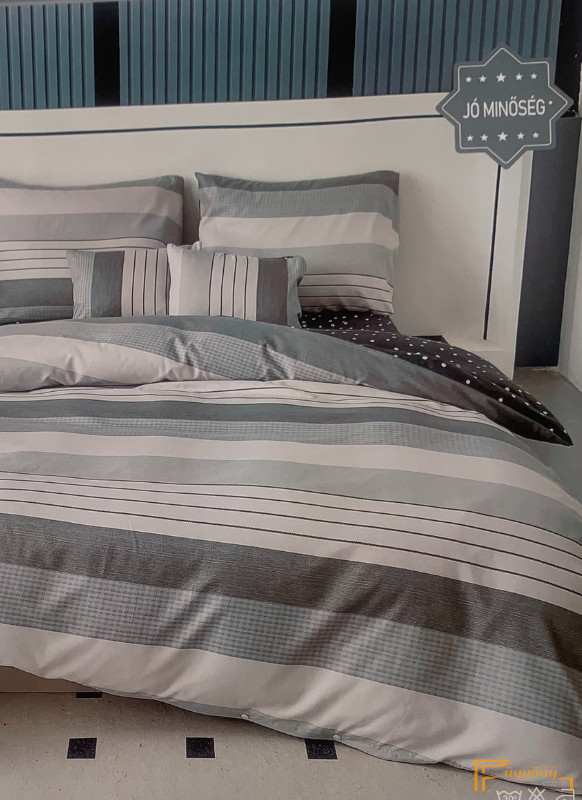 Bézs alapon világosszürke, antracit csíkos. Hátoldala és a lepedő színe:sötétszürke anyagában pőttyös.