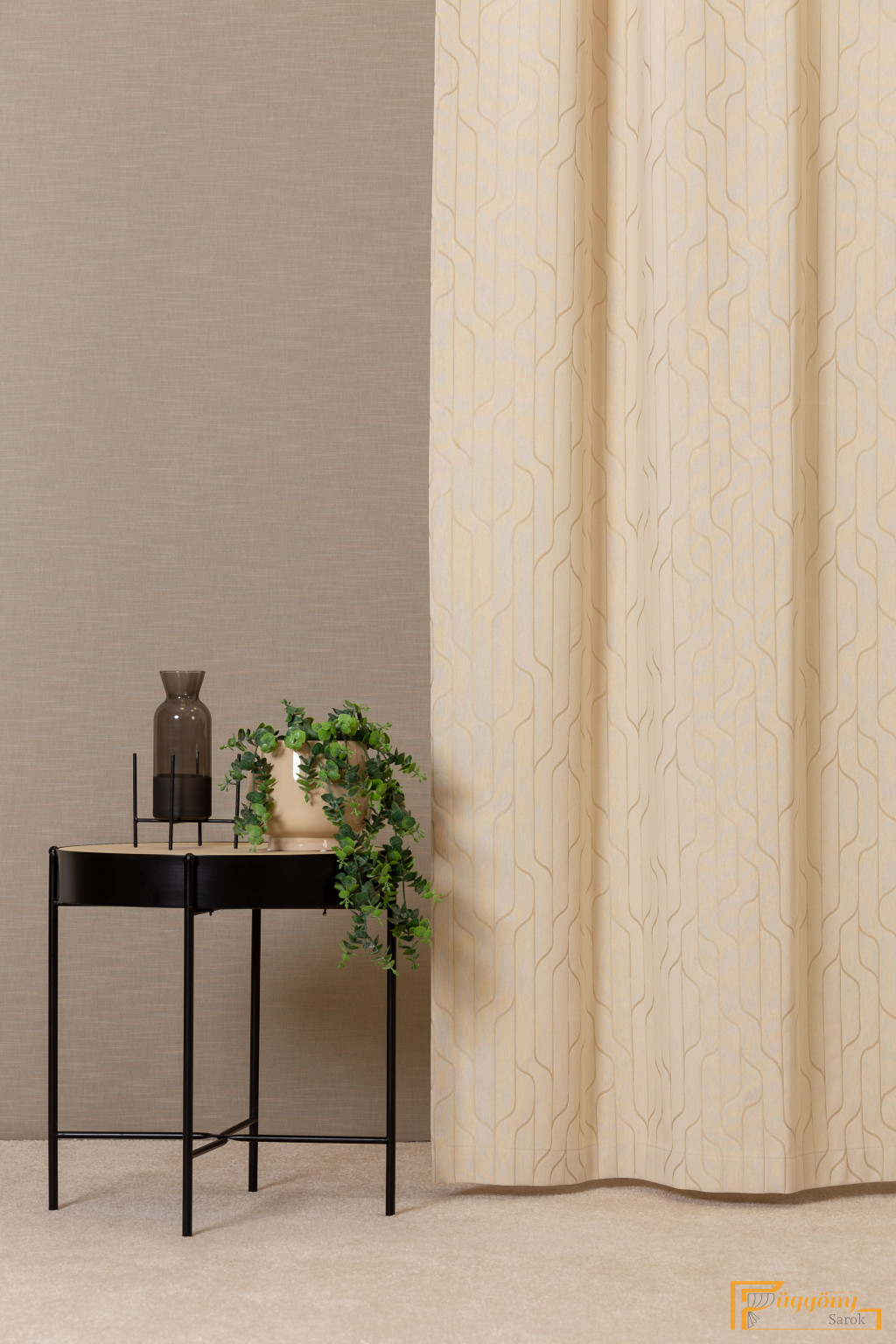 Modern mintás, 60% pamut tartalommal készült dekor függöny. Art deco mintázata több stílust foglal magában,így lesz egyedi rendezett, és harmonikus. Jacquard szövéssel mintázott, naturális színei mellett a merészebb szürke és fekete szín is fellelhető.